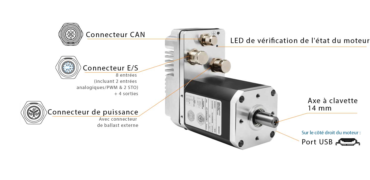 Démarrage facile de votre moteur avec un simple câble USB et un PCProtection contre l'inversion de polarité en cas d'erreur de câblage